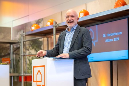 Der Amtschef des Umweltministeriums, Ministerialdirektor Dr. Michael Münter, sagte in seinem Grußwort, dass der Dreiklang von Energieeinsparung, Effizienz und Ausbau der Erneuerbaren nach wie vor wesentlich für das Erreichen der Klimaziele sei – auch im Gebäudebestand, wo es weiterhin einen großen Handlungsbedarf gebe.
