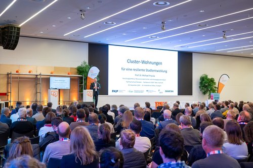 Michael Prytula, Inhaber der Forschungsprofessur für ressourcenoptimiertes und klimaangepasstes Bauen in Potsdam, hat innovative Wohnkonzepte vorgestellt: Cluster-Wohnungen verbinden die Vorteile einer kleinen Privatwohnung mit der Funktionsweise einer Wohngemeinschaft und sind ein Gegenmodell zum ständig steigenden Wohnraum pro Person.