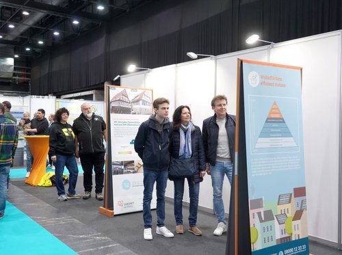 Die kostengünstig zu vermietende Wanderausstellung von Zukunft Altbau vermittelt Besucherinnen und Besuchern von Veranstaltungen und kommunalen Räumlichkeiten den Nutzen von Sanierungen. Auf vier bis sechs Roll-ups sind die wichtigsten Aspekte der energetischen Gebäudesanierung zusammengestellt.