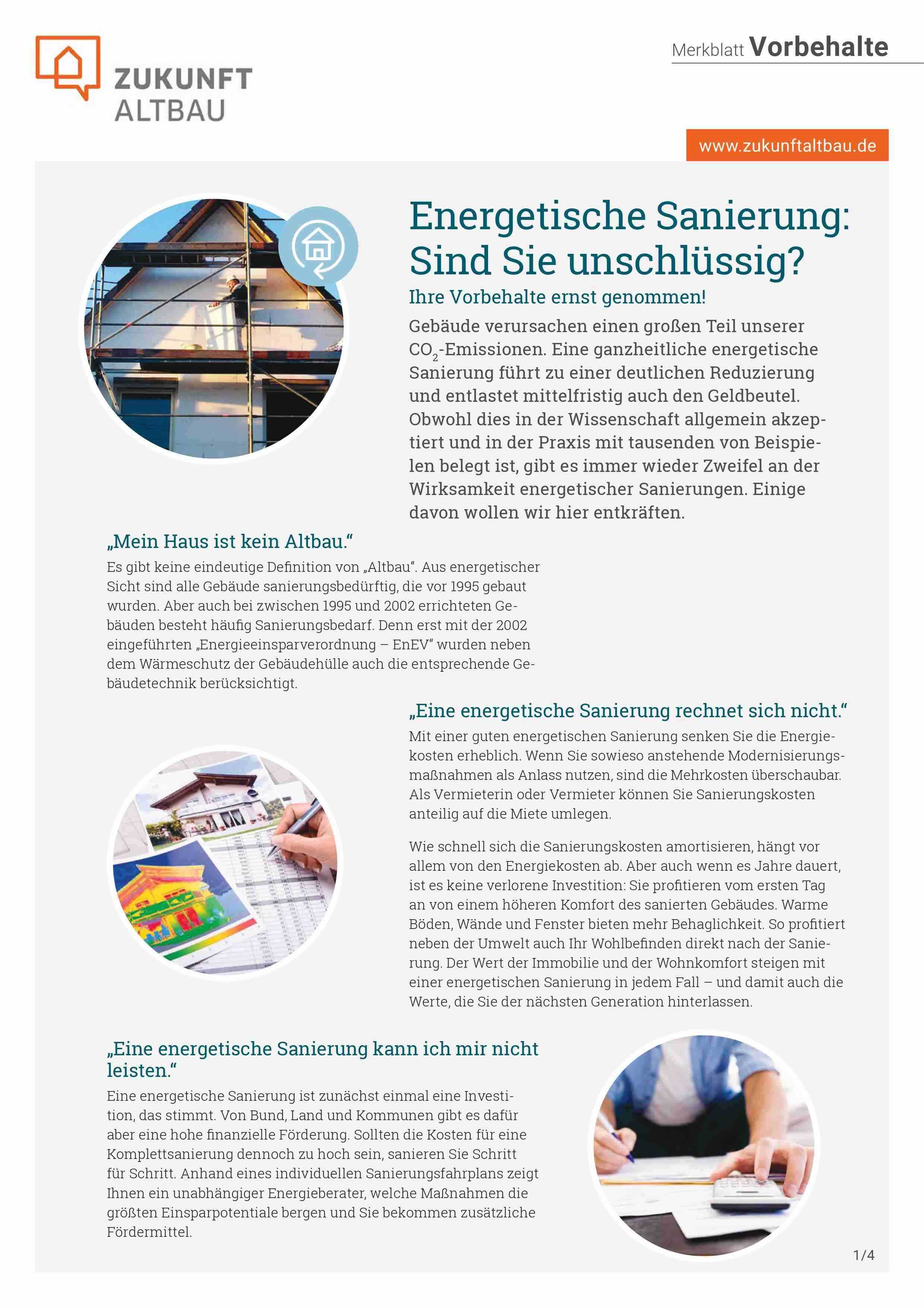 Hier haben Sie die Möglichkeit, Broschüren und Flyer kostenfrei online zu bestellen oder sie als PDF herunterzuladen. Die Lieferung erfolgt nach Bestelleingang innerhalb von zehn Tagen. Sollten Sie Ihre Publikationen sehr kurzfristig benötigen, senden Sie bitte eine E-Mail an info(at)zukunftaltbau.de.